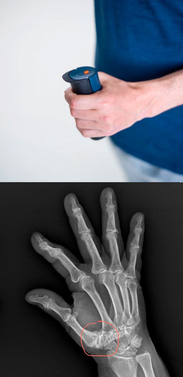 Esempio di Rx della mano dx con marcata rizoartrosi.