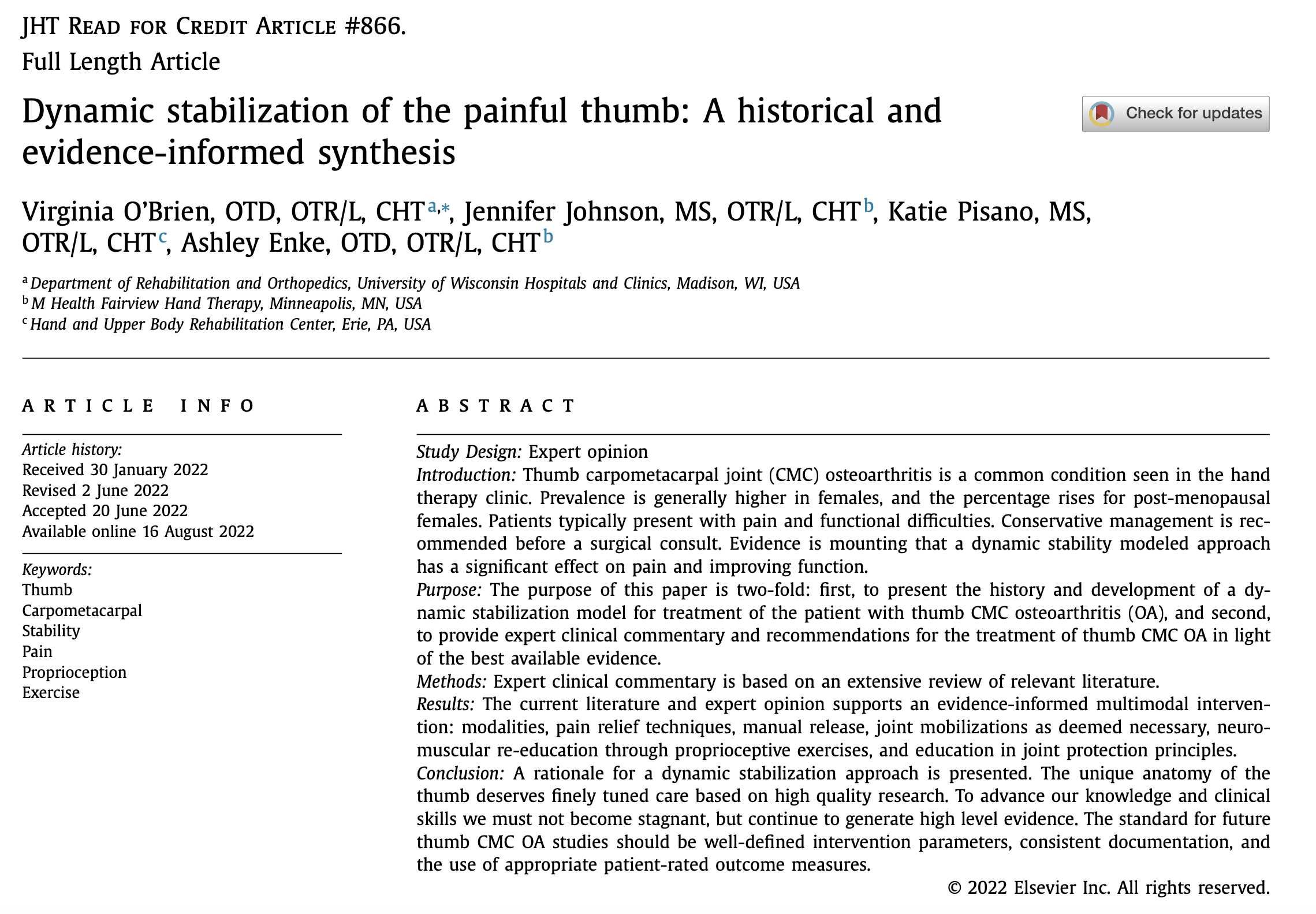 Il nostro programma per la rizoartrosi è costruito sulle migliori evidenze scientifiche disponibili.